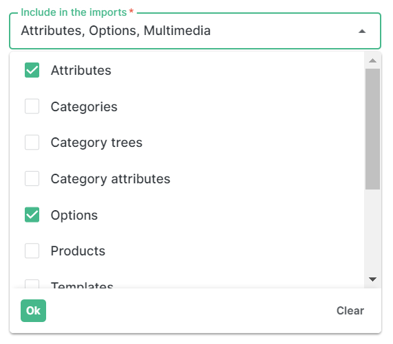 | attributes.csv                                                                                                             | custom\_fields.csv                                       | multimedia.csv                                                                                                                                   | options.csv                                                                                                                                                                                                                                   |