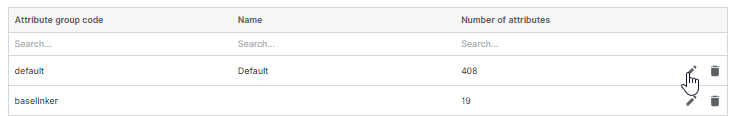 Aby edytować grupę, kliknij ikonę edycji (ołówek). W trybie edycji dostępne są dwie karty [Ogólne ](https://usermanual.ergonode.com/ergonode-user-manual-pl/struktura-produktu/grupy-atrybutow/ogolne)oraz [Translations](https://usermanual.ergonode.com/ergonode-user-manual-pl/struktura-produktu/grupy-atrybutow/tlumaczenia).