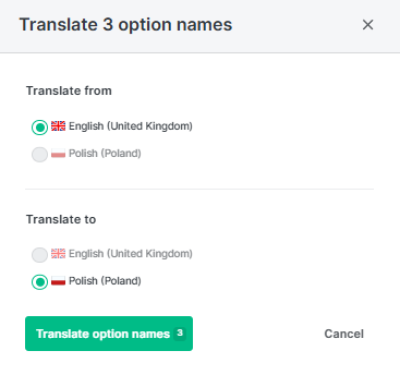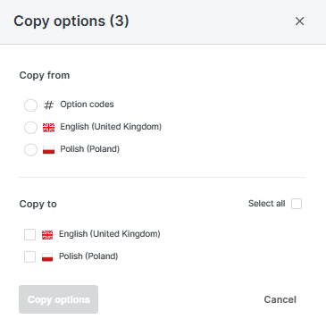 You can easily copy attribute options between languages. To do so, select the options you wish to copy.