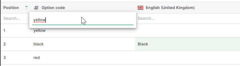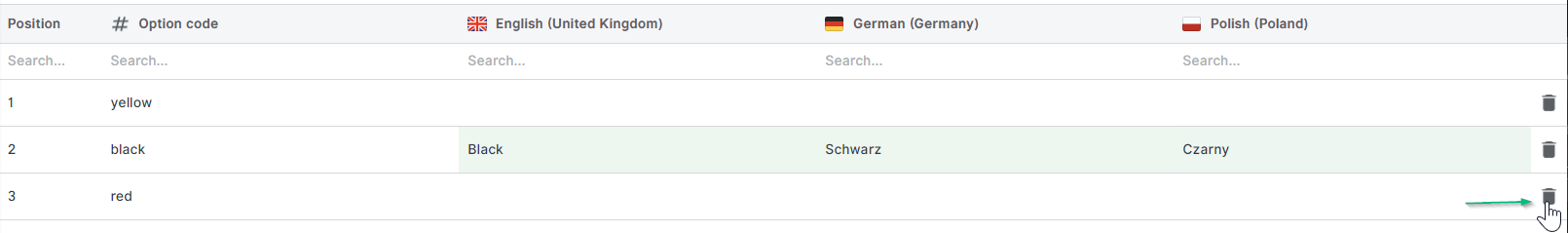 Here you can add and translate options for an attribute. To change what languages are displayed on the grid go to the Languages list in the left top corner of the screen and select desired ones.