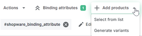 If you wish to change selected attributes, click on Binding attributes to the left of + Add products