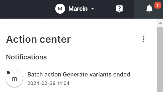 The generation of variants is done in the background. When the process is complete, users will be notified via the Action Center.