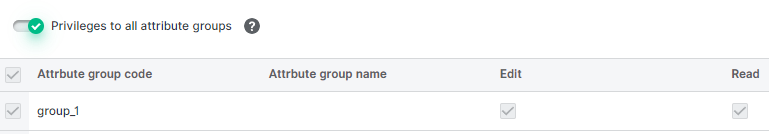There's also the "Privileges to all attribute groups" option. If you click that, that user role will get instant read and write permission to all attributes, even those created in the future. If this stays off (default) you will need to set up permissions for all newly created [attribute groups](https://usermanual.ergonode.com/product-design/attribute-groups) manually.
